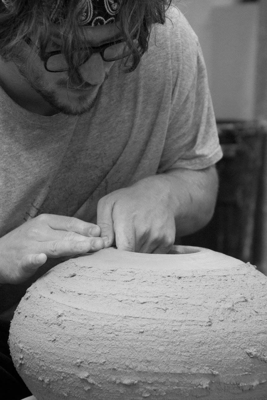 Clay is very much a living substance in its own right, with a lifespan that starts with a soft, infant-like fragility. When exposed to the aired environment, it breaths, relieving moisture and hardening over the passage of time. As the clay coagulates, it becomes subject to touch and pressure in different ways, no longer as versatile or malleable as its wet, supple counterpart. Finally the clay dries completely reaching the end of its lifespan where no more changes or additions can be made. The correlations that exist between this lifecycle and that of the human condition are what I am most interested in.